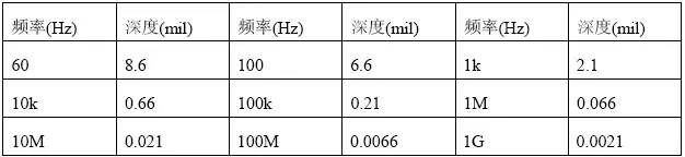 根據(jù)計算,趨膚深度與頻率有關(guān):