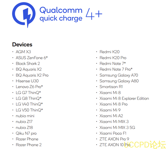 我們 UCCPD論壇還在高通拿到了,目前的支持 QC4+/QC4的手機設備。
